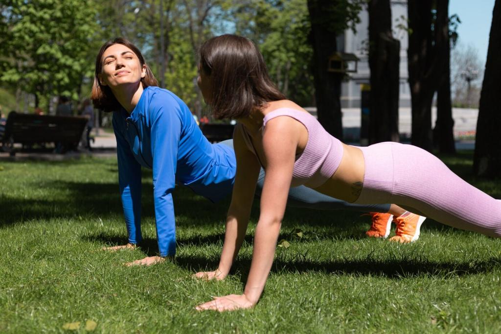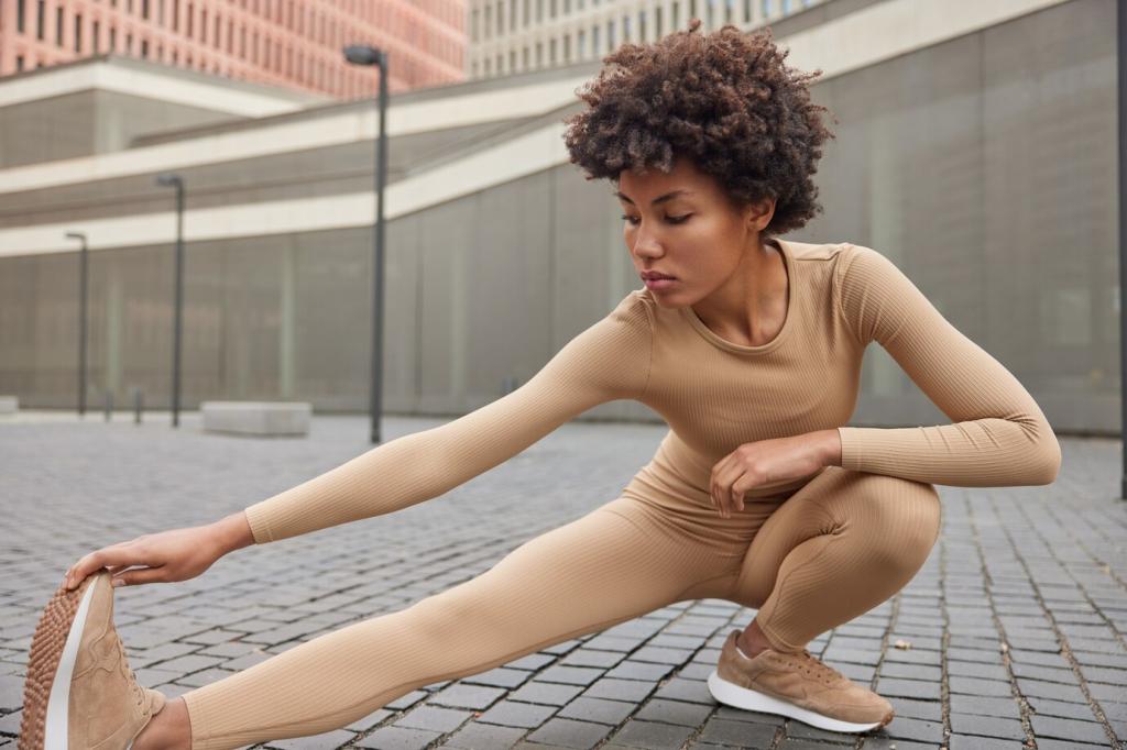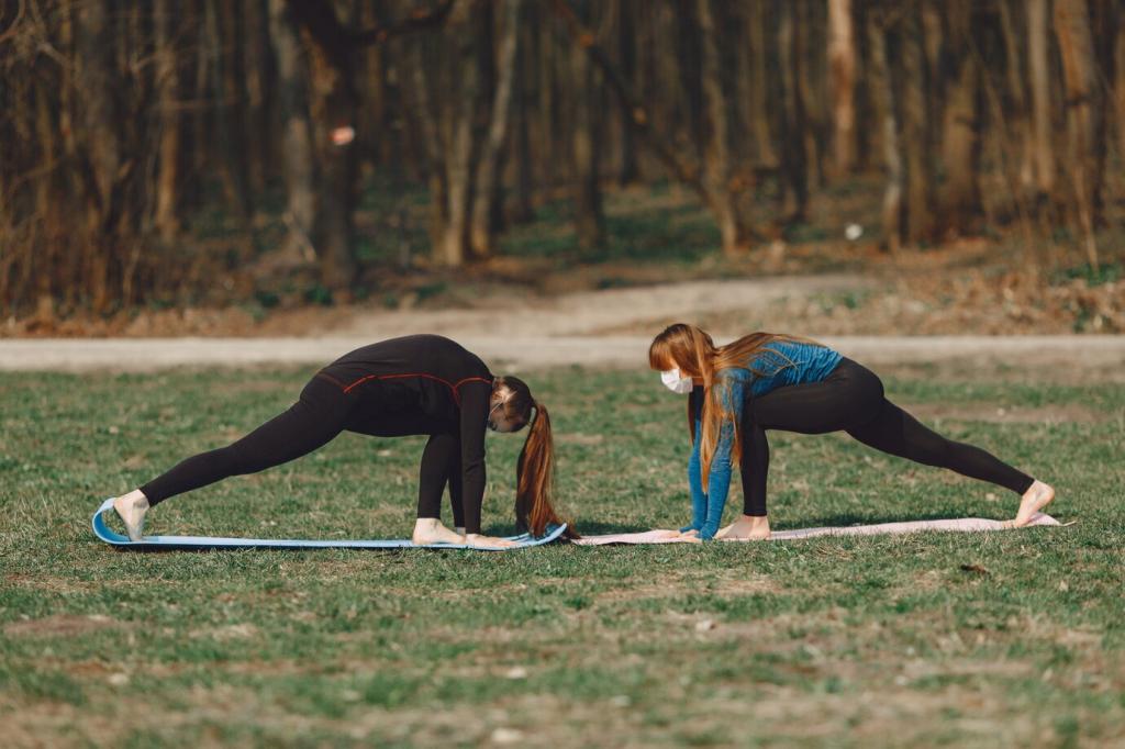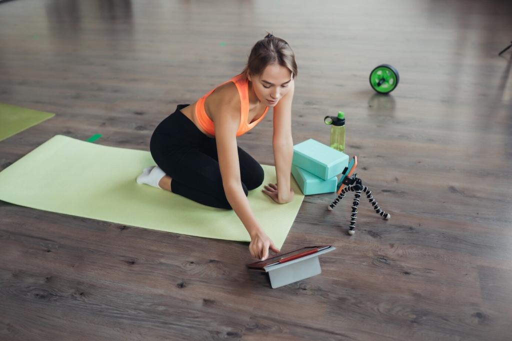 Räume eine Matte breit Platz frei, sorge für rutschfesten Untergrund und angenehmes Licht. Lege Handtuch und Wasser griffbereit. Eine kleine Routine beim Aufbauen schafft Vorfreude und signalisiert deinem Gehirn: Jetzt beginnt deine Trainingszeit.